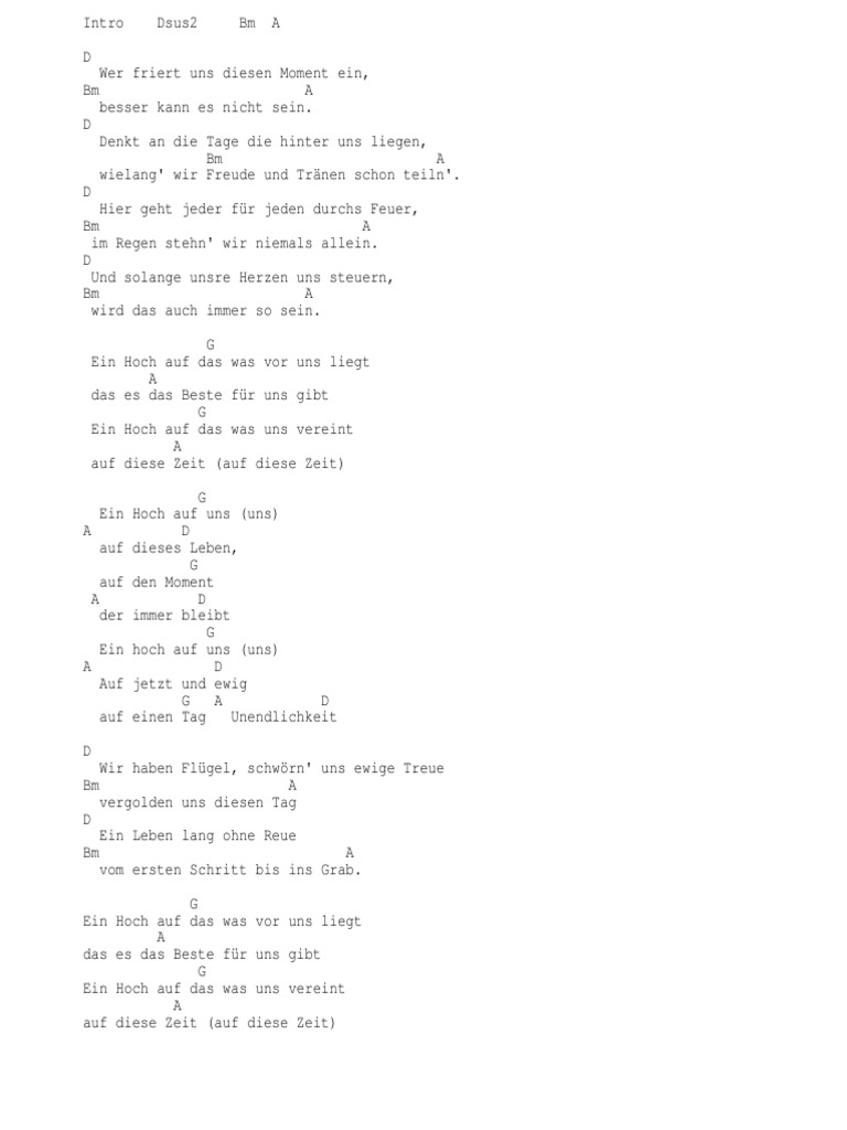 Liedtext Ein Hoch Auf Uns - Liedtexte